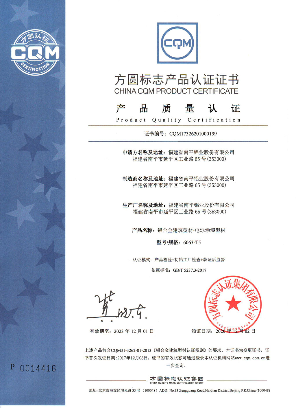 電泳涂漆型材產(chǎn)品質(zhì)量認證