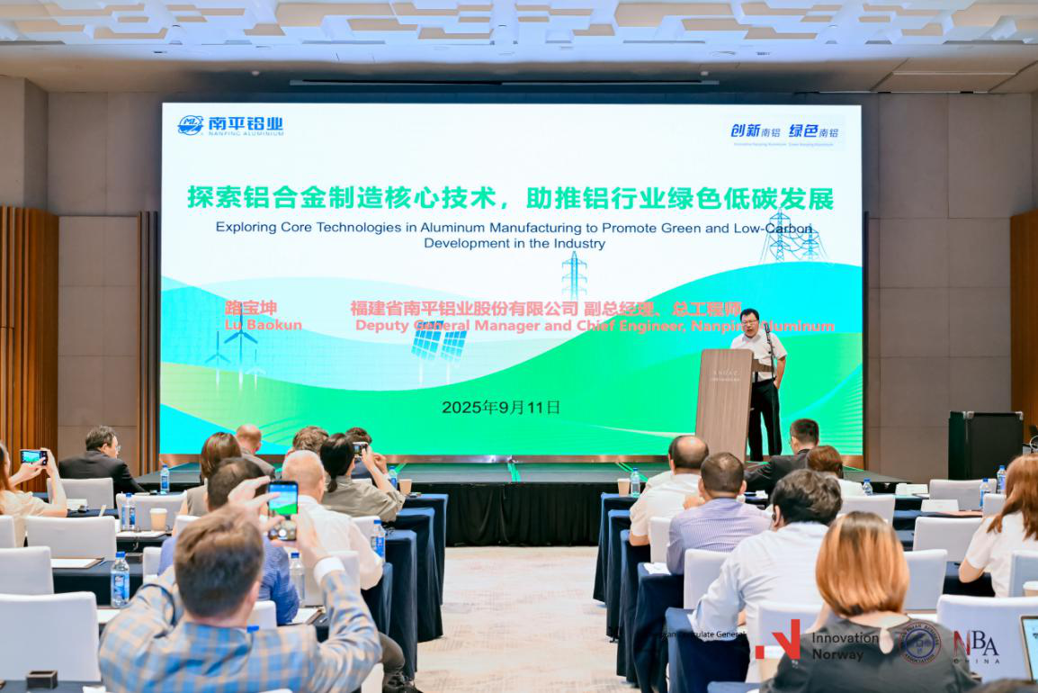 9月11日,由挪威駐華大使館、挪威創(chuàng)新署等機構(gòu)主辦的“2025共筑綠色未來:挪威-中國綠色轉(zhuǎn)型論壇”上海站活動成功舉辦。來自上海政府、企業(yè)及創(chuàng)新領(lǐng)域的代表齊聚一堂,共同探討綠色轉(zhuǎn)型的前沿趨勢與實踐路徑,助力全球低碳經(jīng)濟轉(zhuǎn)型。南平鋁業(yè)公司應(yīng)邀出席論壇,公司副總經(jīng)理、總工程師路寶坤作題為“探索鋁合金制造核心技術(shù),推動鋁行業(yè)綠色低碳發(fā)展”的主旨報告,分享了鋁加工行業(yè)在綠色轉(zhuǎn)型方面的實踐經(jīng)驗。