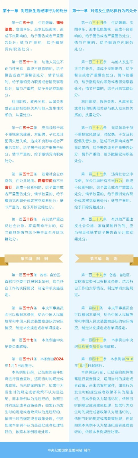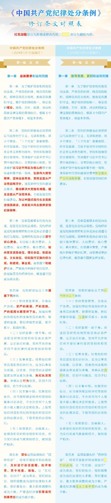 《中國(guó)共產(chǎn)黨紀(jì)律處分條例》修訂條文對(duì)照表 發(fā)表時(shí)間:2024-01-04